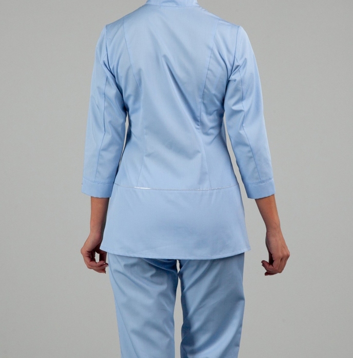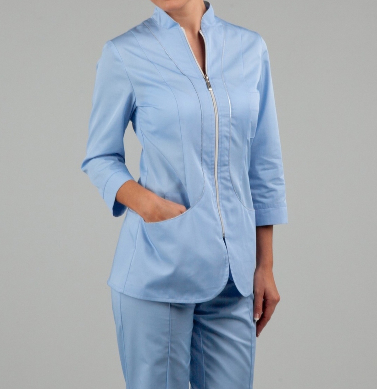 Особенности этой женской блузы от Доктор Стиль - фигурный край и застежка на молнию. Блуза приталенная с оригинальными глубокими карманами и воротником-стойкой. По вытачкам и воротнику проходит серебристая отделка. Молния и рукав 3/4 делают эту блузу чрезвычайно удобной. Размеры: с 40 по 54