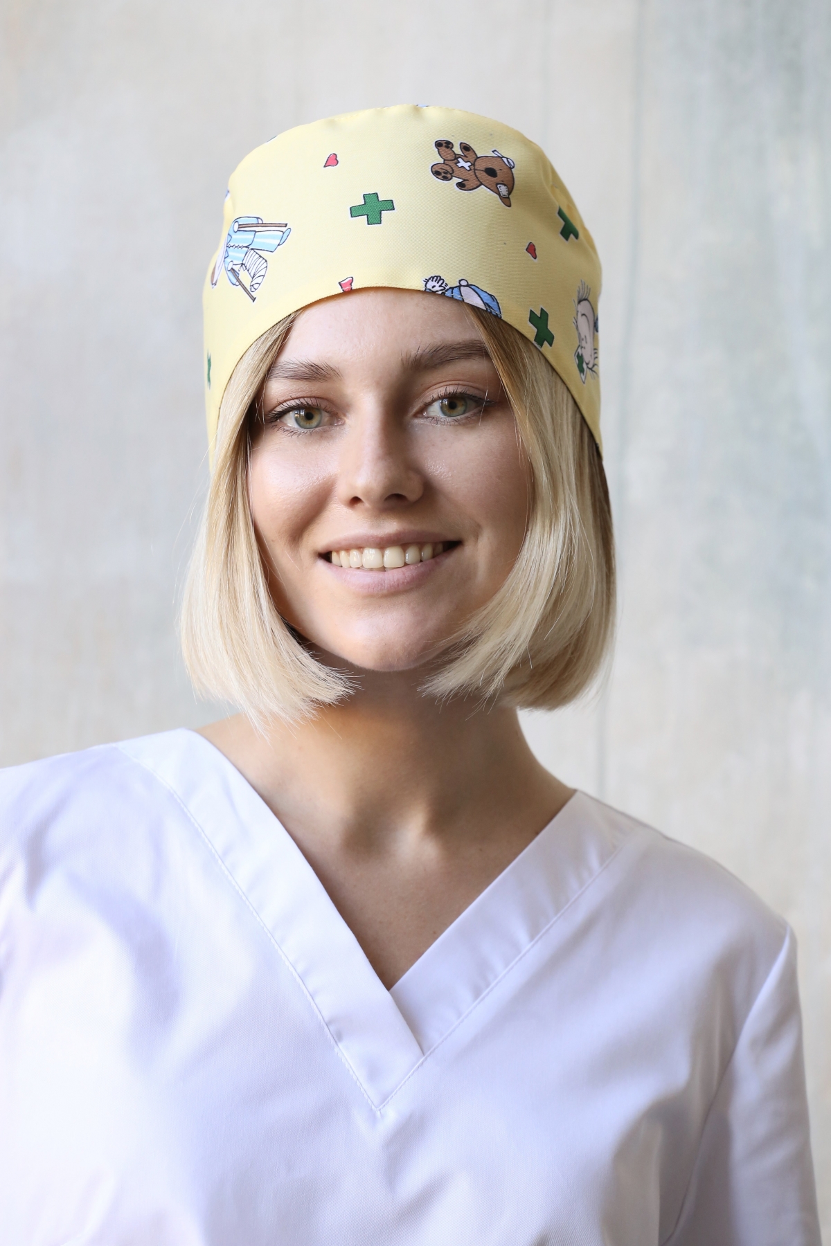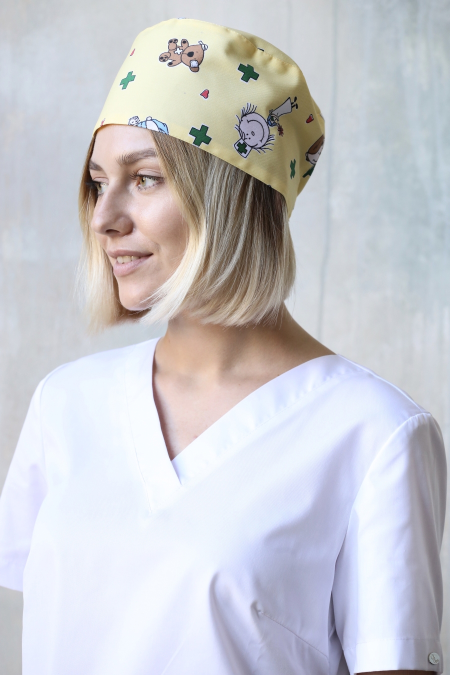 Головной убор - необходимая часть костюма любого медика. Такой колпак прекрасно сочетается с халатом, блузой или любым костюмом. Он практичен, удобен в носке.