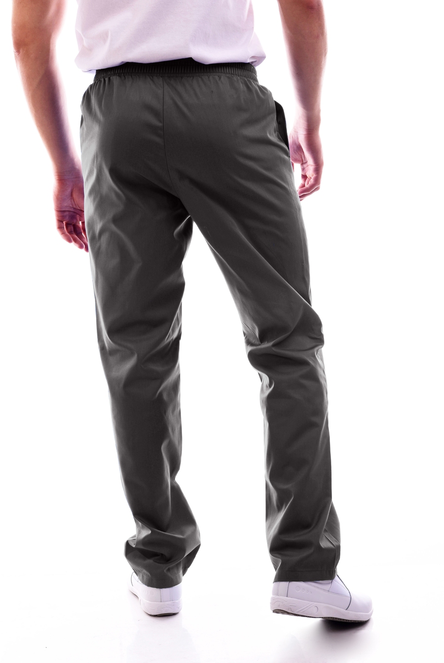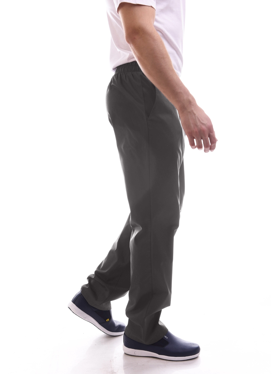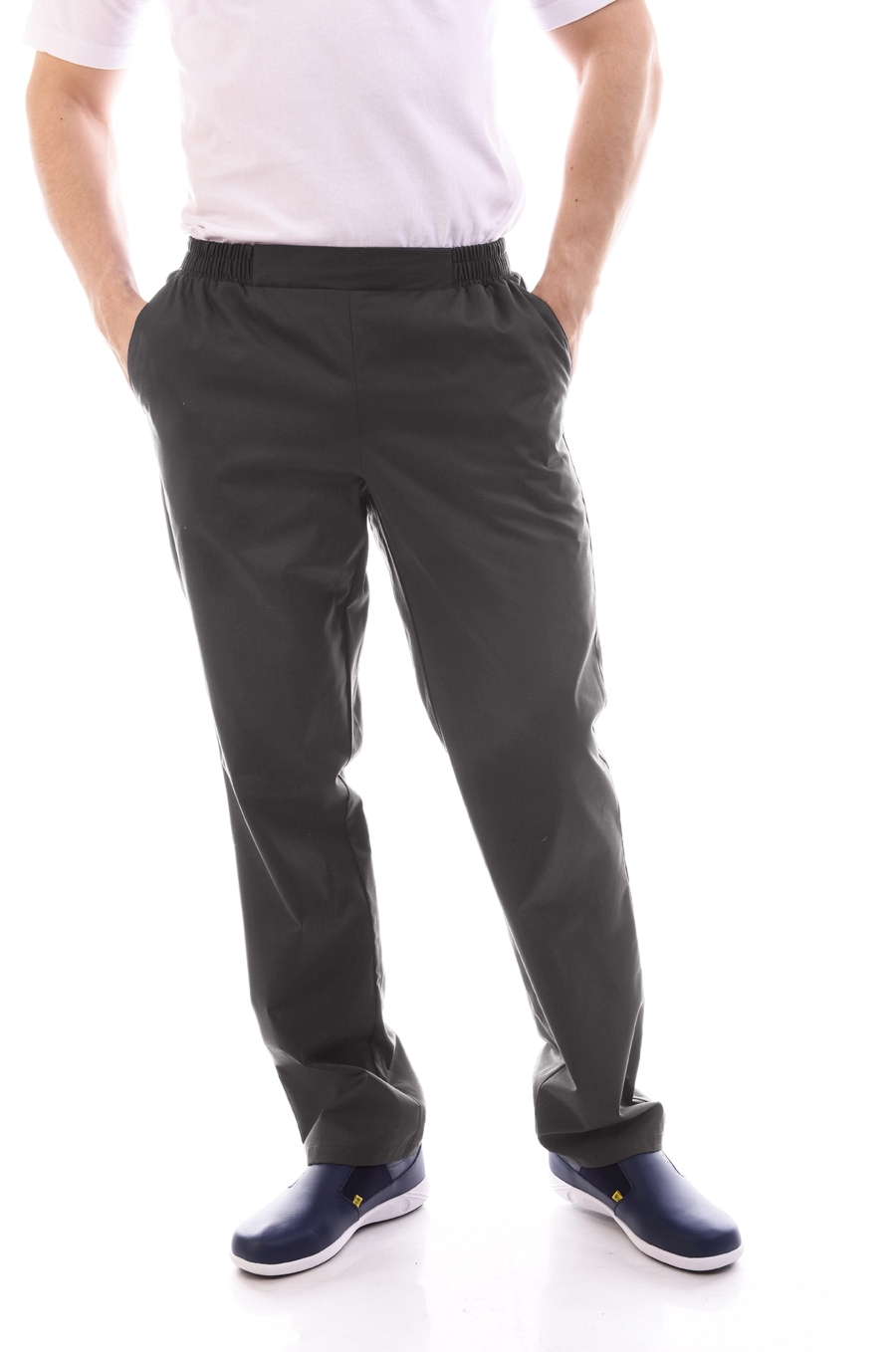 Классические брюки свободного кроя помогут Вам чувствовать себя комфортно на протяжении всего рабочего дня. Модель на эластичном поясе имеет два глубоких кармана в боковых швах. Брюки идеально сочетаются как с халатами, так и с блузами.