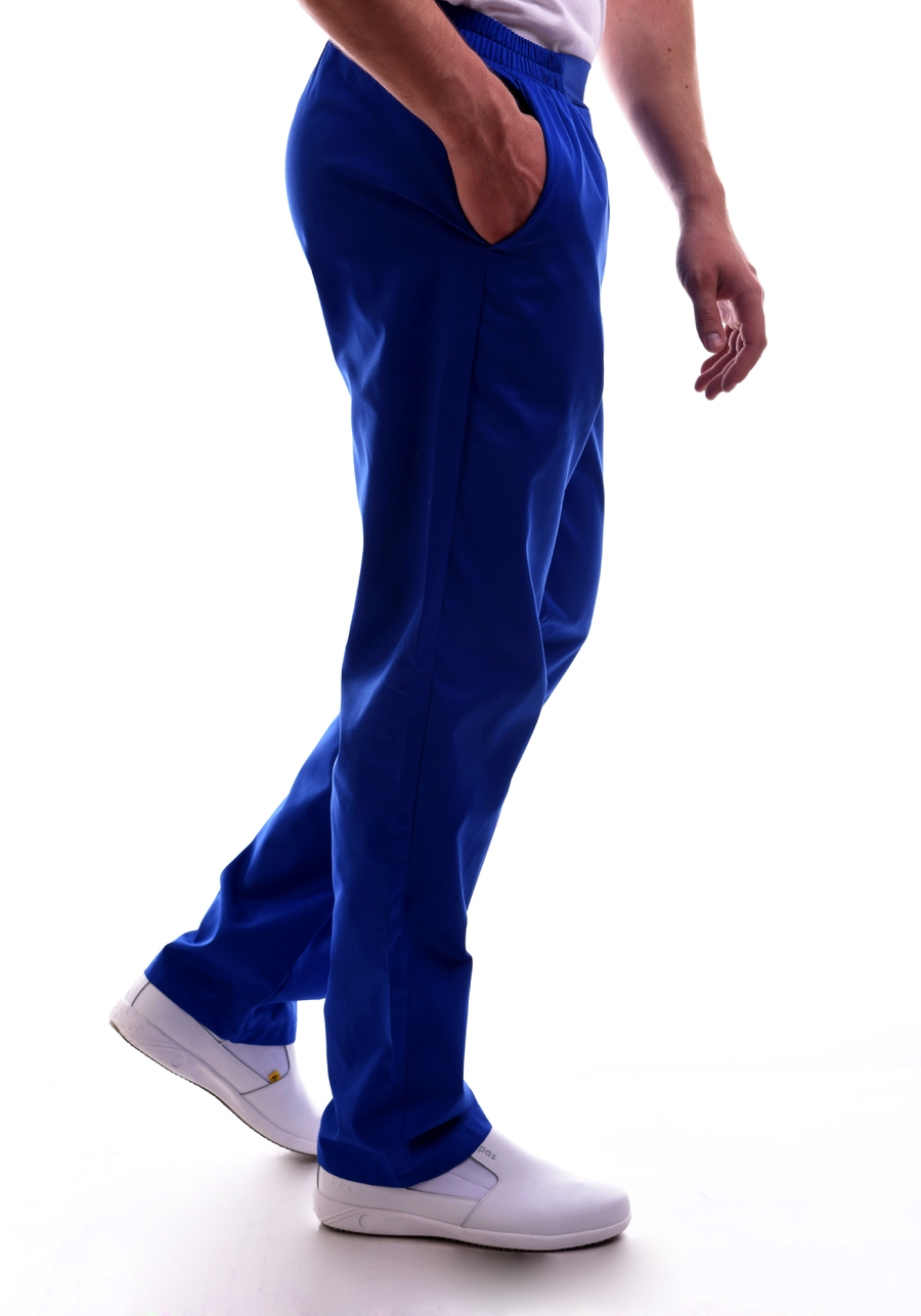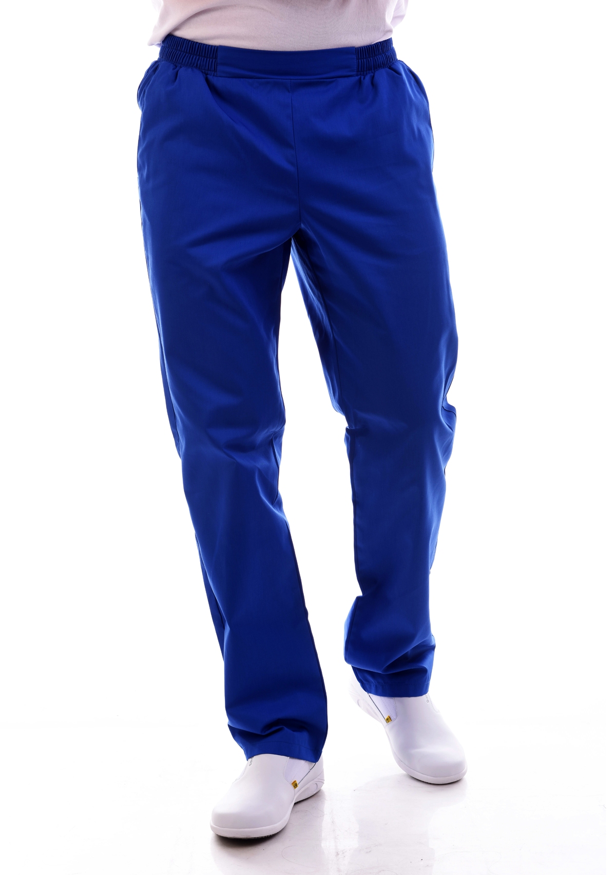 Классические брюки свободного кроя помогут Вам чувствовать себя комфортно на протяжении всего рабочего дня. Модель на эластичном поясе имеет два глубоких кармана в боковых швах. Брюки идеально сочетаются как с халатами, так и с блузами.