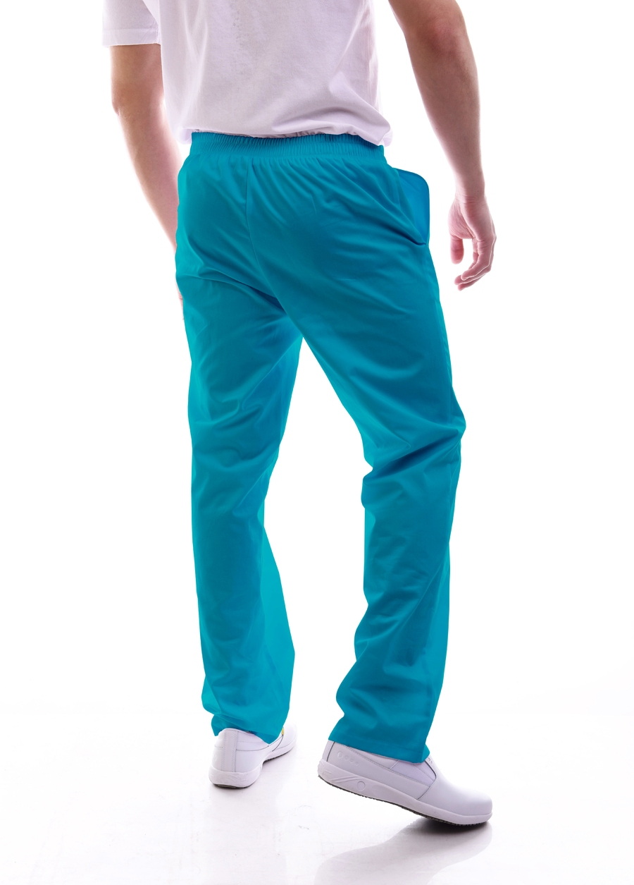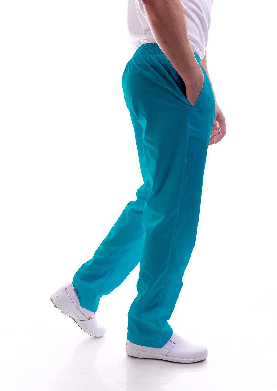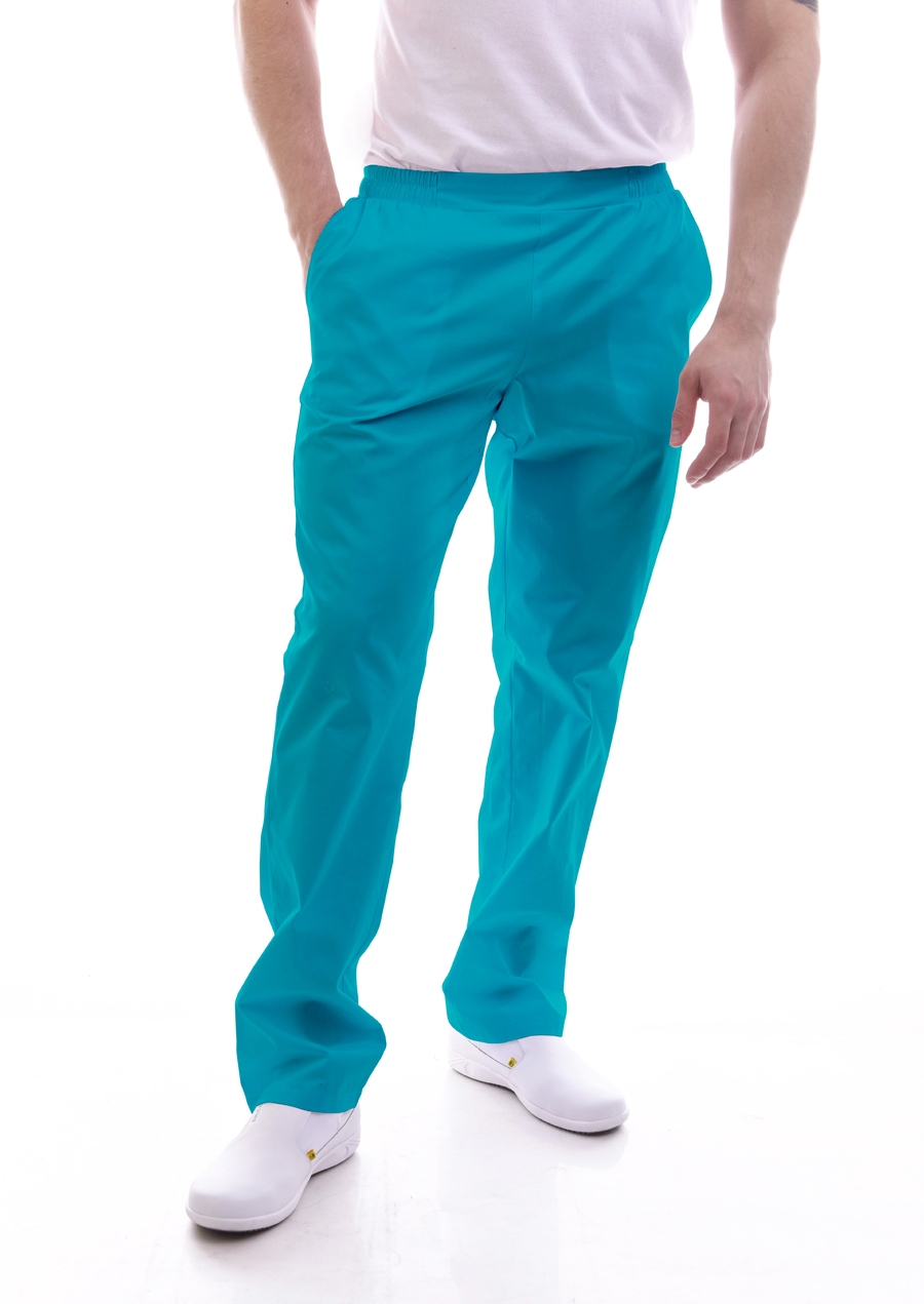 Классические брюки свободного кроя помогут Вам чувствовать себя комфортно на протяжении всего рабочего дня. Модель на эластичном поясе имеет два глубоких кармана в боковых швах. Брюки идеально сочетаются как с халатами, так и с блузами.