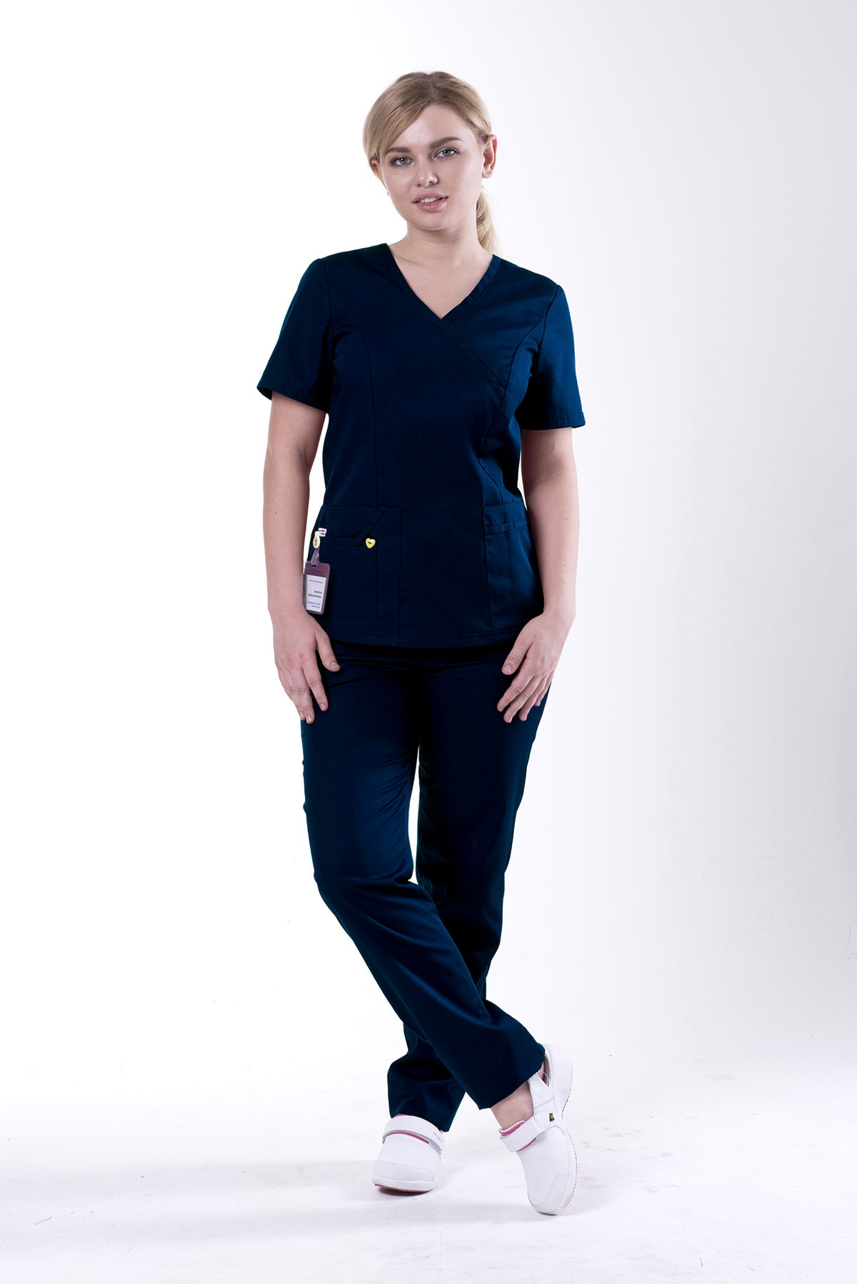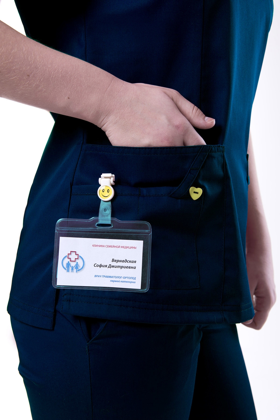 Боковые карманы со шлевкой для бейджа - то, что нужно для удобного размещения медицинских принадлежностей.