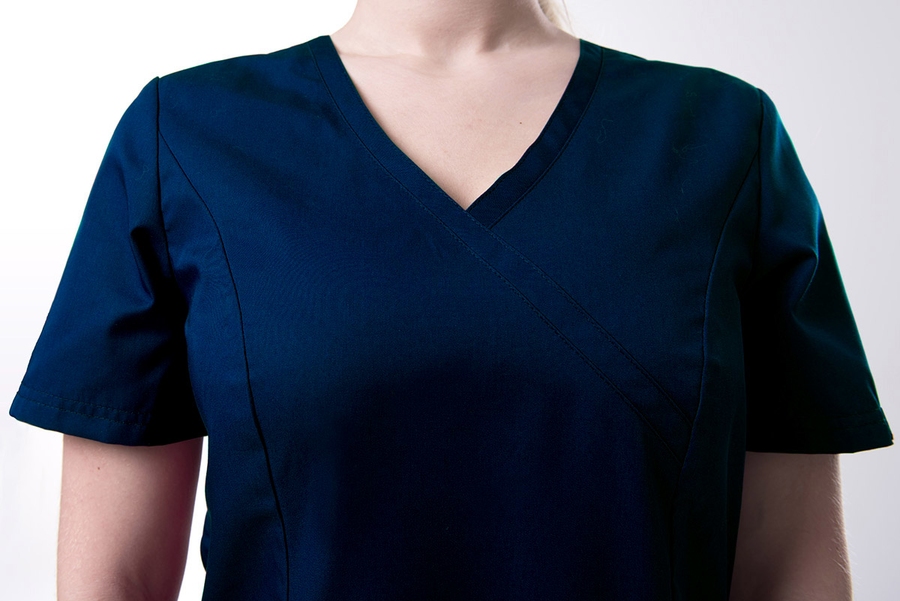 Женская блуза-хирургичка с V-образным вырезом горловины.