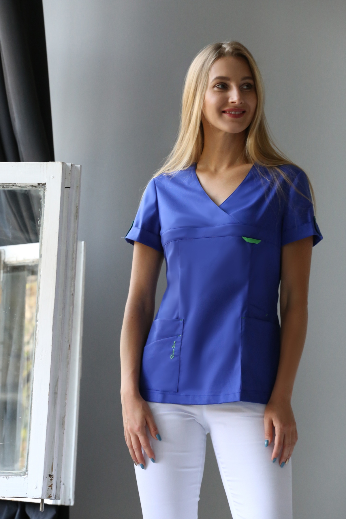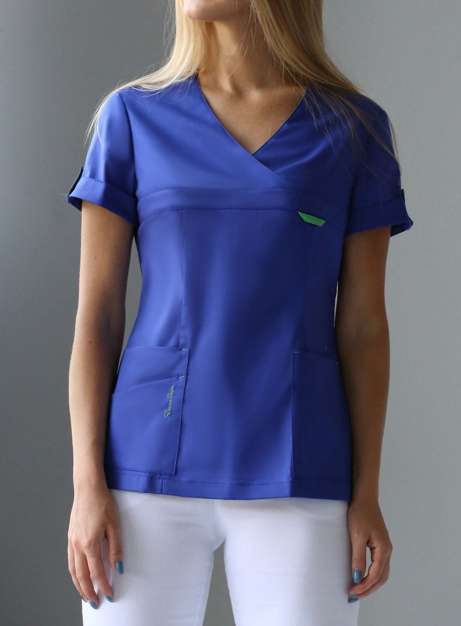 Идеальная женская модель для тех, кто предпочитает одежду без застежек! V-образная горловина, короткий рукав с отворотом и патой сразу привлекут внимание. Предусмотрены четыре кармана - два больших и два дополнительных. В них поместятся и личные вещи, и рабочие инструменты. Блузы от "Доктор Стиль" - всегда элегантны и практичны. Размеры 42-52